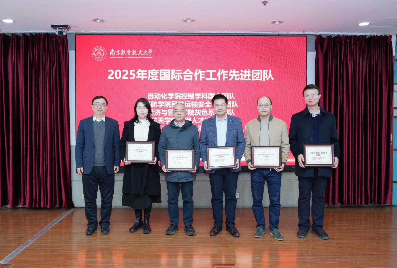 姜斌为学校2025年度国际合作工作先进个人和先进团队颁奖并作总结讲话。他充分肯定了2025年学校国际化工作取得的一系列重要突破和进展,结合当前国际背景,分析了学校外事工作面临的新形势、新挑战,明确了本次会议以高水平对外开放赋能学校高质量发展的核心任务。围绕下一步全校国际化工作,姜斌提出三点明确要求。一是聚焦一流目标,打造国际合作核心优势,围绕“三航”特色优化全球合作布局,强化育人铸器使命,攻坚国际大学评价关键指标,提升学校国际影响力;二是健全制度保障,统筹外事发展与安全,完善协同推进机制、建强外事工作队伍、树牢安全底线思维;三是坚持全员参与,凝聚合作合力,各学院以国际视野谋发展、强化资源共享,秉持久久为功理念,锚定《南京航空航天大学全球战略行动计划(2026-2028)》目标,构建全方位、多层次、宽领域的国际合作新格局。他强调,实现2035年建成世界一流大学的宏伟目标,离不开高水平国际合作的强力支撑,希望全校上下敢于迎难而上,奋力开创学校国际合作工作新局面,为世界一流大学建设注入源源不断的开放动能。