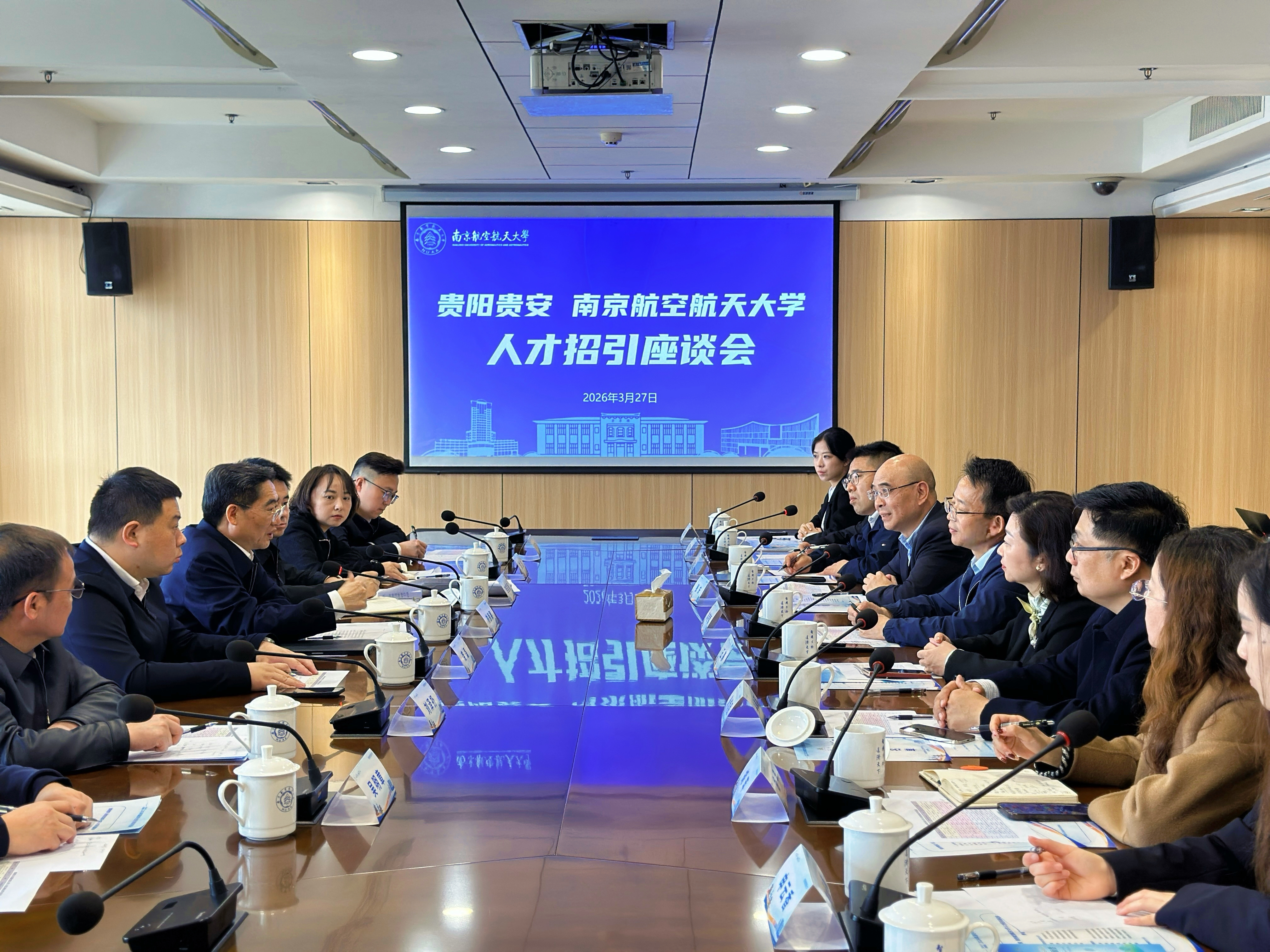 刘宇雷代表学校对刘良果一行表示热烈欢迎,并全面介绍了南航的办学发展情况。他表示,南航始终践行“为党育英才,为国铸重器”的使命,已与贵阳贵安多家军工企事业单位在科学研究、技术攻关等方面取得突出合作成效,贵阳贵安的创新产业发展布局与南航优势学科高度契合,双方在人才培养、科技成果转化等方面进一步合作空间广阔。学校将以此次引才活动为契机,进一步深化校地合作,同时鼓励南航学子尤其是黔籍学子,将个人理想融入家乡建设,在贵阳贵安的发展舞台上施展才干、成就未来。