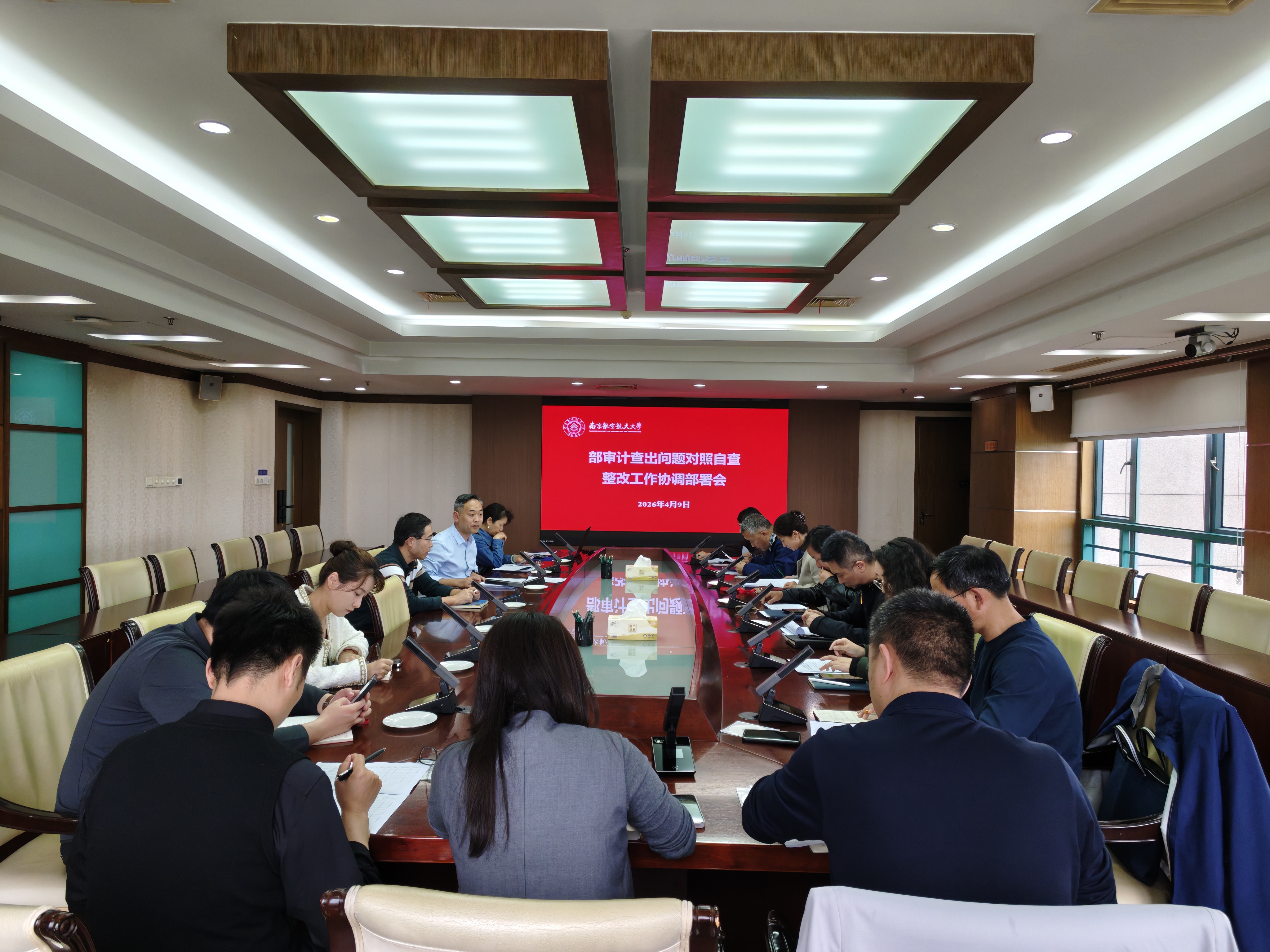 4月9日,我校召开2023年以来上级审计查出问题对照自查整改工作协调部署会。校党委副书记、纪委书记杭育新,相关职能部门负责同志参会。