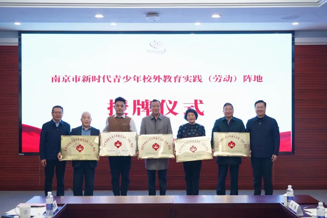 会上,徐子敏和张俊共同为获得“南京市新时代青少年校外教育实践(劳动)阵地”的高校授牌。我校也作为5所高校之一入选该阵地。
