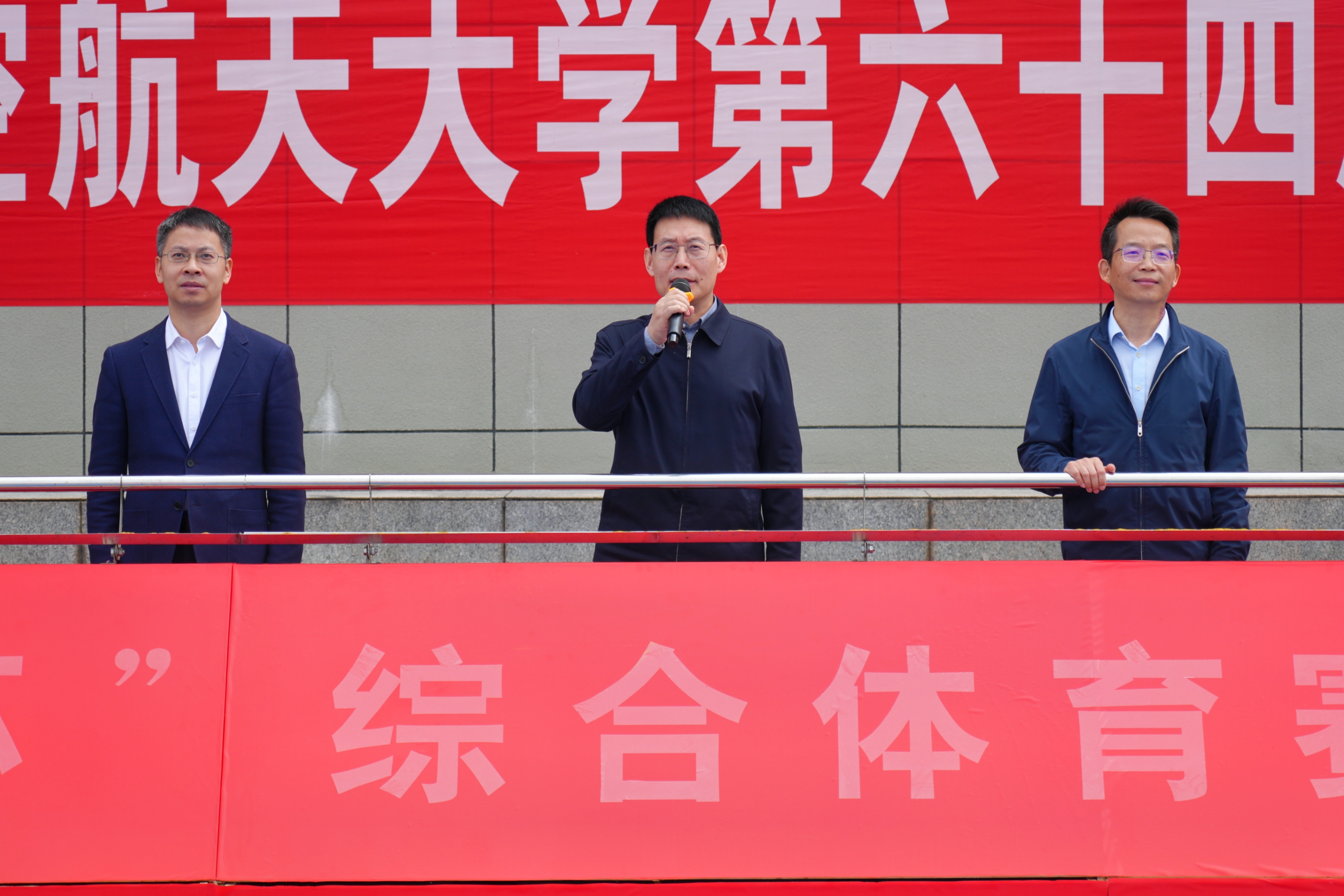 甄良宣布第六十四届运动会田径比赛暨“南航杯”综合体育赛事开幕。